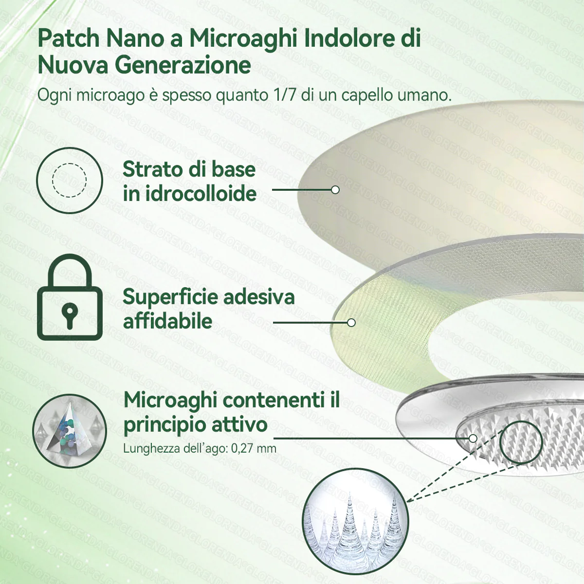 Il nostro patch a nano-microneedle รจ dermatologicamente testato e progettato con precisione per controllare il rilascio transdermico degli ingredienti attivi.