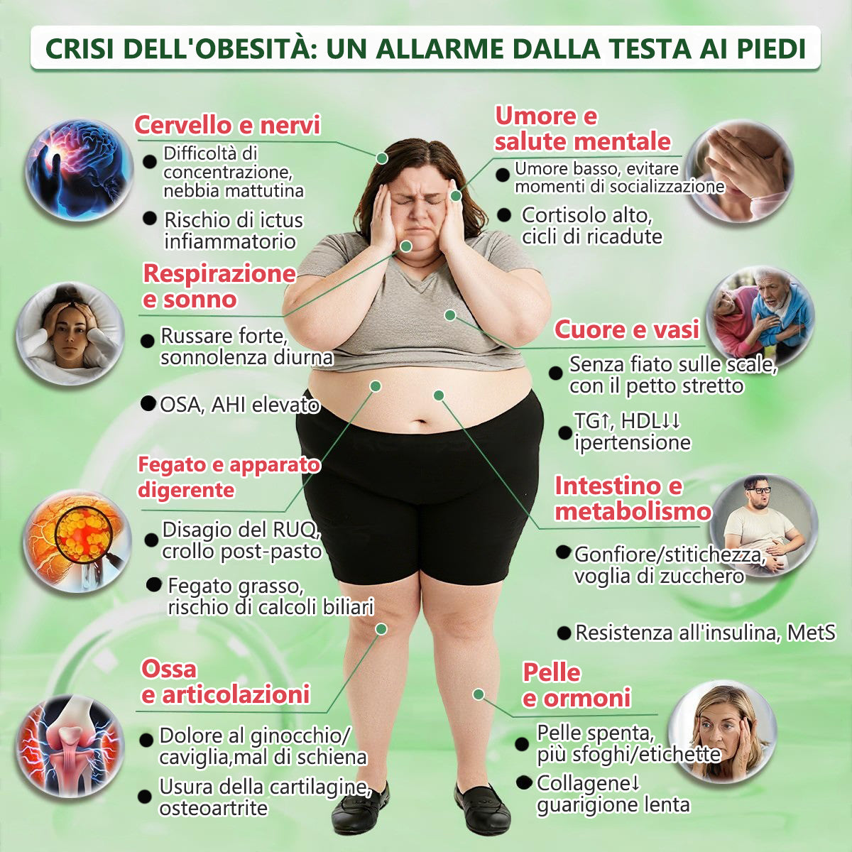 I problemi legati allโobesitร possono anche portare ad altre malattie potenzialmente letali: